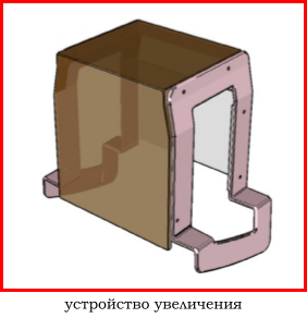 В зависимости от высоты устройства достигается коэффициент геометрического увеличения объекта исследования 1.5х, 1.8х или 2.0х.