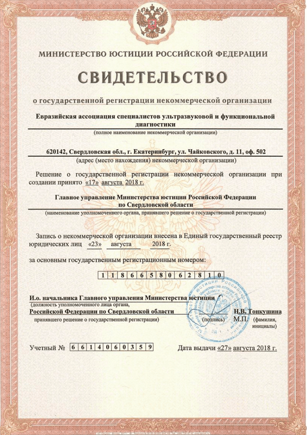 Свидетельство о государственной регистрации некоммерческой организации