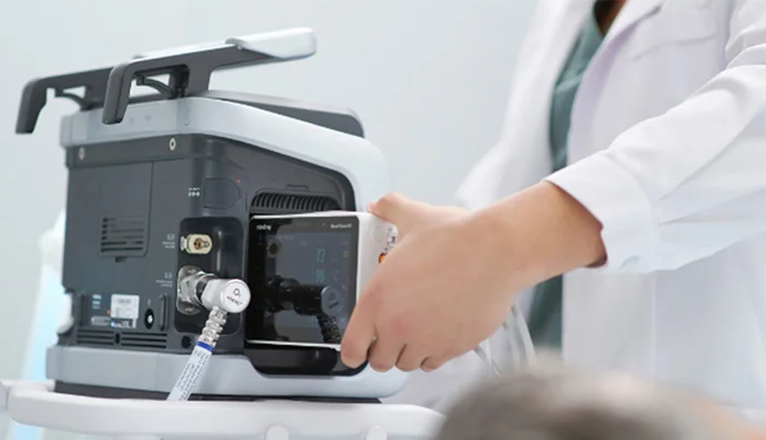 - Автоматически синхронизирует настройки аппарата искусственной вентиляции легких и прикроватного аппарата искусственной вентиляции легких, исключая ручную настройку