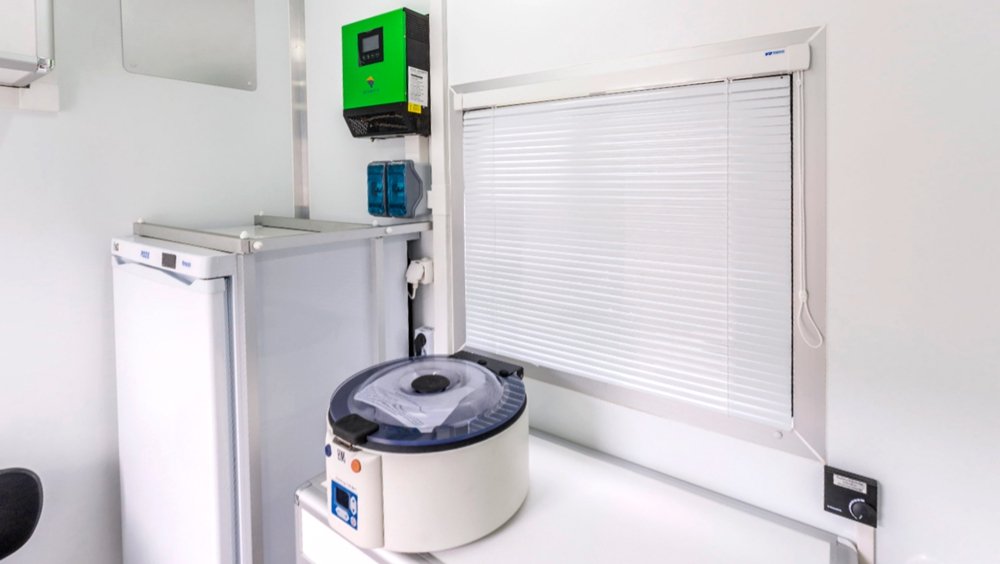- Лабораторный и диагностический кабинеты оснащены всем необходимым специализированным медицинским оборудованием для профилактических осмотров населения. Для защиты от вибрационных и транспортных нагрузок, вся мебель и медицинское оборудование при перевозке надежно фиксируется.