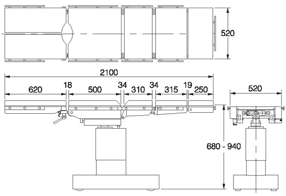 Минимальная и максимальная высота столешницы. Минимальная высота важна для операций, допускающих сидящее положение врача (нейрохирургия, челюстно-лицевая хирургия). Максимальная высота важна для травматологических и ортопедических операций, когда врач может работать инструментами на уровне своей груди.