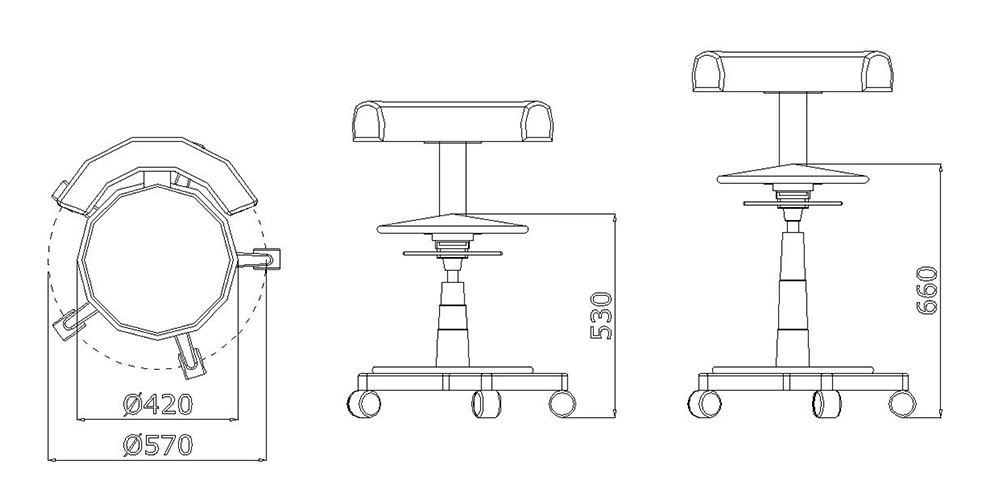 Стул врача Euroclinic SPD изготовлен из прочной стали и оснащен регулировкой высоты с помощью газовой пружины.