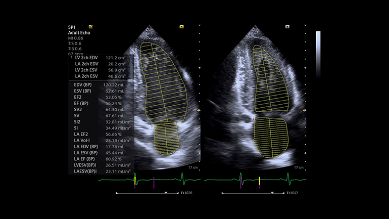 Технология выполнения измерений левых отделов сердца (eSie Left Heart). Пакет измерений левых отделов сердца eSie Left Heart — это надежный инструмент, который повышает надежность и оптимизирует рабочий процесс благодаря автоматическому определению границ левого желудочка и левого предсердия и выполнению измерений при стандартных трансторакальных исследованиях у взрослых пациентов.
