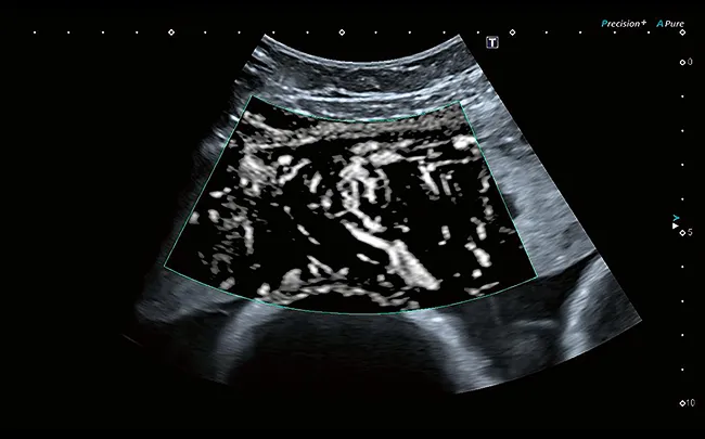 Уровень визуализации сосудов SMI в сочетании с высокой частотой кадров повышает достоверность диагностики при оценке микроциркуляторной сети органов и поражений.