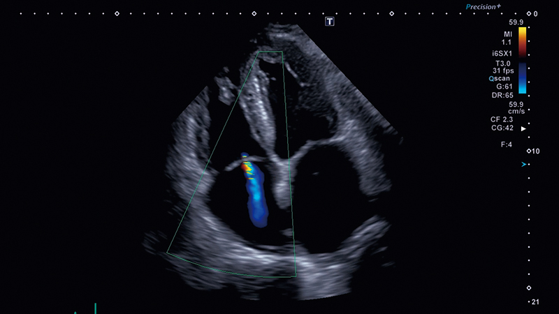 Высокочувствительный цветной допплеровский датчик системы отображает небольшие струи или потоки, направленные вниз к легочным венам, с выдающимся пространственным и временным разрешением.