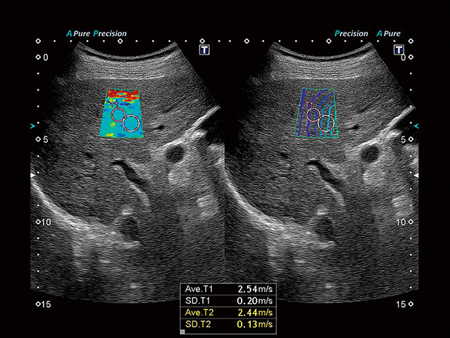 Эластография сдвиговой волной Обеспечивает количественное измерение и отображение эластичности тканей в режиме реального времени. Уникальная карта распространения - интуитивно понятный инструмент для визуальной оценки качества вашей эластограммы.