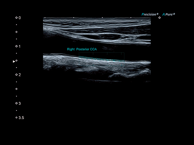 Автоматическое сканирование Простой в использовании автоматизированный инструмент для определения толщины слоев интима-медиа стенок сонных артерий.